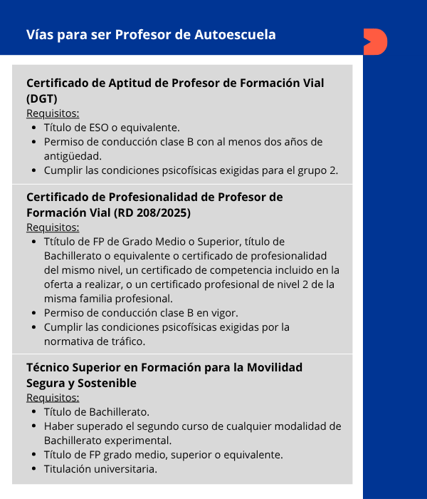 - Vías para trabajar como profesor de autoescuela