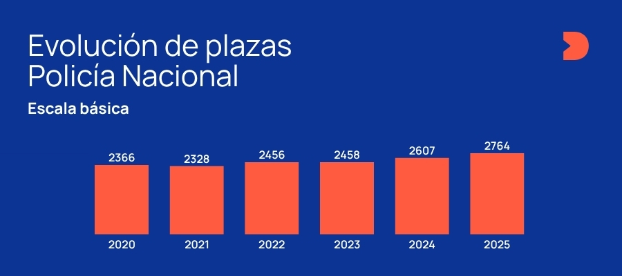 A continuación, te dejamos un gráfico con la evolución del número de plazas convocadas en los últimos años, para que puedas ver cómo ha ido aumentando la oferta y planificar mejor tu preparación. 📈