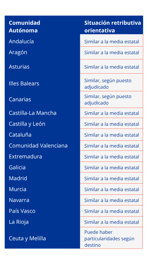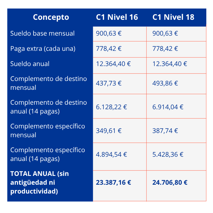 Aunque la estructura salarial sea estatal, el puesto concreto adjudicado también influye, sobre todo por el nivel asignado y por la configuración del complemento específico.