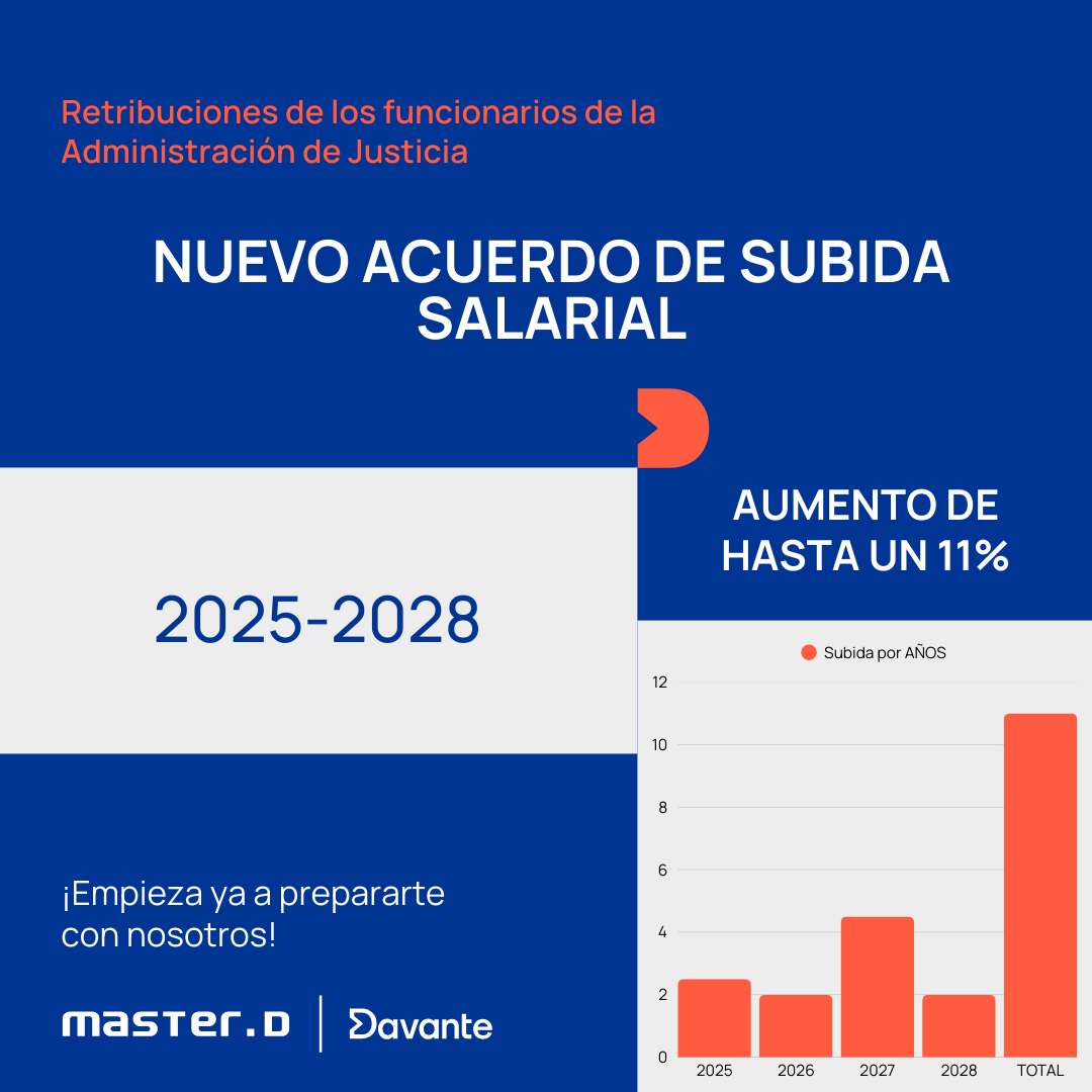 ¡Recuerda! Qué además de contar con todas estas ventajas y complementos, el Real Decreto-ley 14/2025 ha aprobado una subida salarial respecto de los años 2025-2028, progresiva, con la que podrás contar si entras a formar parte de la Administración de Justicia.